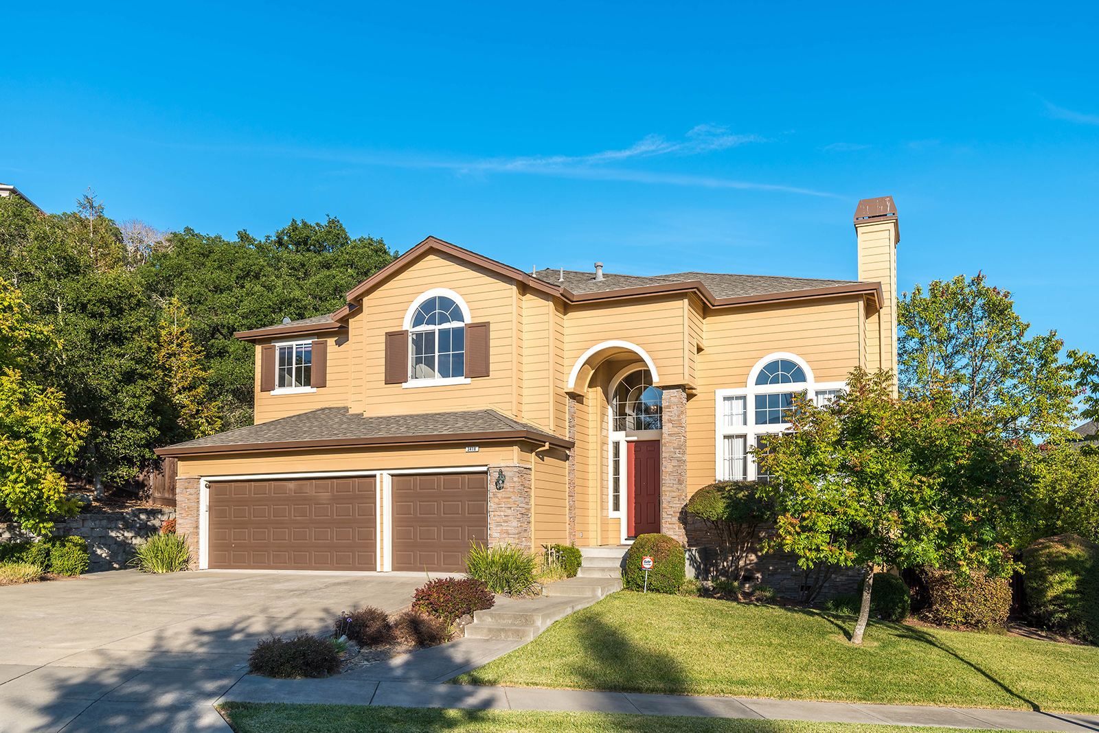 This stunning residence is nestled on a beautifully landscaped lot at the end of a cul de sac in desirable Fountaingrove. The fabulous open floor plan features over 3100 square feet of living space with light filled interiors. One bedroom and full bath are located on the main level, a spacious master suite, 2 additional bedrooms and bonus room are located upstairs. Shows like a model with designer flourishes throughout. Features include hardwood entry and hall way, upgraded carpet, 2 fireplaces, custom paint, formal dining room, island kitchen with granite tile counters and breakfast nook. Lovely rear yard with expansive patio, rock walls, gorgeous oak and views. Close to a neighborhood park with lake and trails.